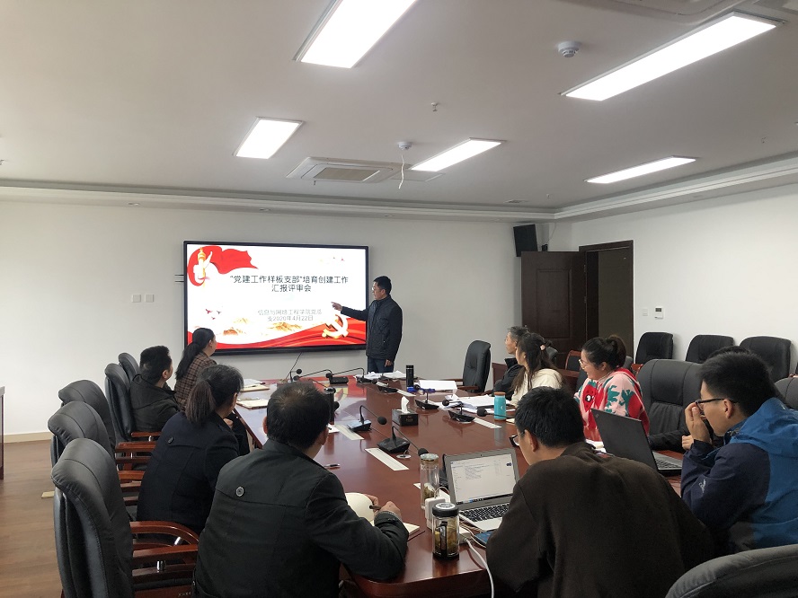 为切实推动新时代党建示范创建和质量创优,做好样板支部培育创建工作,全面落实新时代党的建设总要求,不断提升党组织的战斗力和凝聚力。4月22下午,信息与网络工程学院党总支在龙湖校区综合办公楼417会议室召开“党建工作样板支部”培育创建工作汇报评审会。学院党总支委员,各党支部书记参加会议,会议由党总支书记王振其主持。